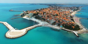 Pomorie is a town and seaside resort in southeastern Bulgaria, located on a narrow rocky peninsula in Burgas Bay on the southern Bulgarian Black Sea Coast.It is situated in Burgas Province, 20,5 km away from the city of Burgas and 18 km from the Sunny Beach resort. The ultrasaline lagoon Lake Pomorie, the northernmost of the Burgas Lakes, lies in the immediate proximity.Pomorie is an ancient city and today an important tourist destination. As of 2020, it has a population of 13,926 inhabitants.